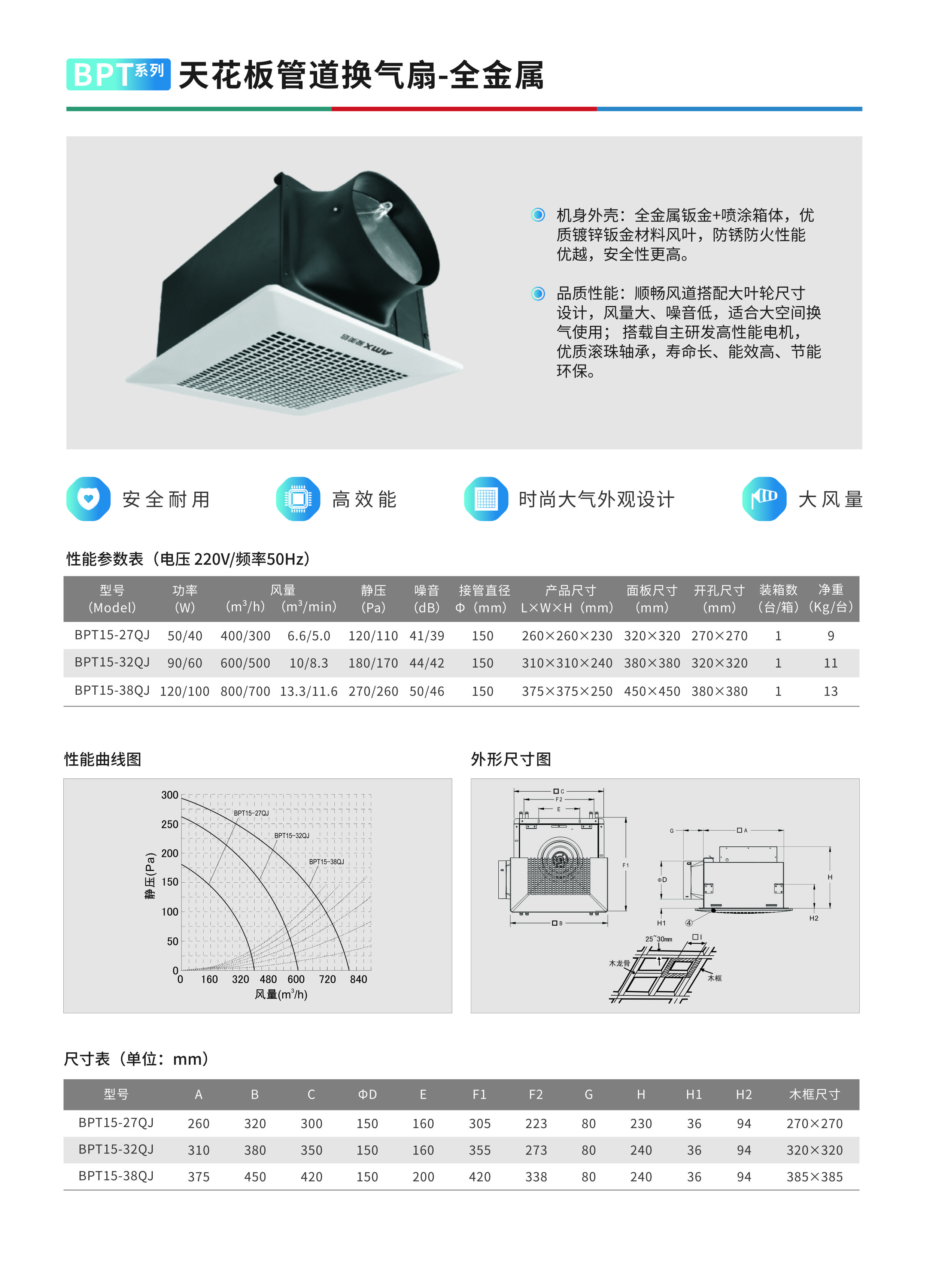 BPT全金屬系列天花板管道換氣扇